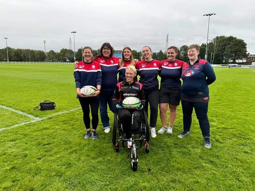 We went into the club house. It was lovely. Apparently it had not long been built. It was great to see they had a nice place to go after playing. BBC border were meeting us there, which was amazing, and the Telegraph. This was fantastic for Carlisle. Exactly what I'd hoped for for every club. Unfortunately there was difficulty recruiting anyone to the team to help with the media side of things. There were 2 people who had said they would help but when it came to it, they hadn't had time to do anything. Fortunately I had sorted out a few things before I began the challenge and Neil had been contacting local radio every day to say we were coming through. So that was great. So this day was fantastic for Carlisle, and for the challenge. The girls ran some drills, and then we went off to do a spot of filming. From there we exchanged the ball, which is the most important past to me. This is the ceremony part when I become the vessel to carry the ball from one club to the next. That's basically how I see myself. A vessel for the ball. A conduit to ensure it gets there in one piece! This challenge may have begun as wheeling from John O’Groats to Lands end, but from the 1st meeting it became so much more than that. I didn't want it to be about me. I wanted it to be about those who inspire me the most. These women. The female rugby players. I can't play, but I can support and advocate and shout from the roof tops about how awesome they are. So that's what I want to do.