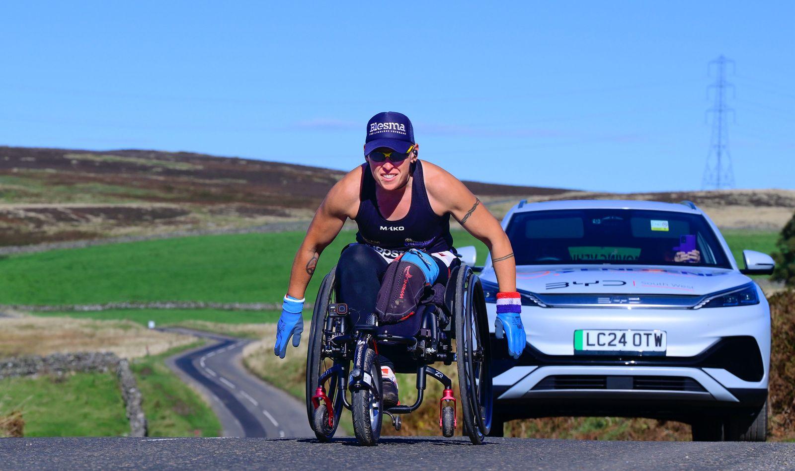 I had a lovely surprising though. I went up quite a steep hill and saw a photographer, who turned out to be my lovely friend, Phil. Well, I saw a camera first and then I thought I recognise that head. And it's still like, oh my goodness, wow! I was totally overwhelmed. I absolutely adore Phil. He has been there from the very beginning, from my 1st ever world record at the Bridgwater half marathon in 2022. It was so good to see him. He is always so positive and I really needed that. Especially when things have been so tough recently and there's been a lot of negativity. It was lovely to see someone positive, and he's always so positive and always so lovely and always makes me smile, So I was just blown away and so happy. He spent the day sort of driving along and taking photos and whizzing past me and getting this camera out, running around the car and then taking more. The day end up being ridiculously long and I mean I did 30 km, which was nowhere near what I set out to do.